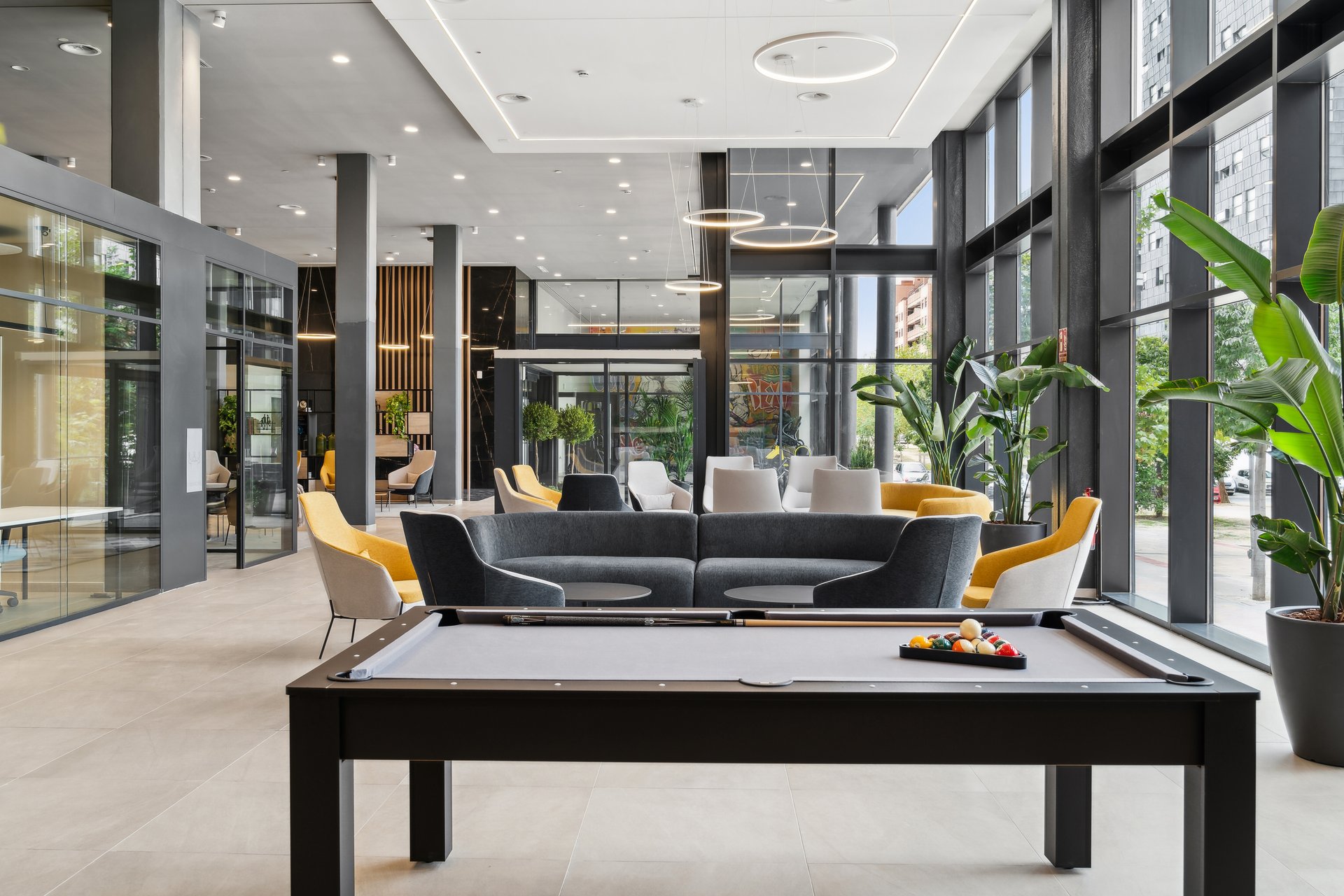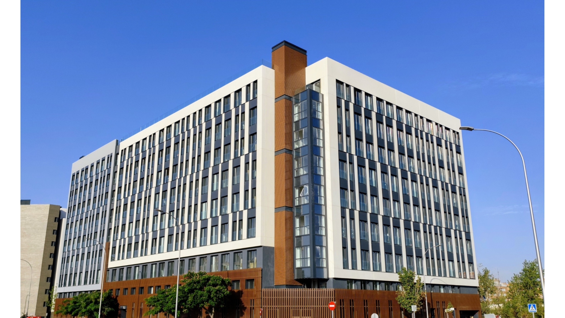 Su arquitectura icónica, firmada por Touza Arquitectos, define un concepto exclusivo de alojamiento flexible que combina estancias de corta y media duración con un completo conjunto de amenities: gimnasio, sala de cine, sala gastro, zona de coworking, piscina en la azotea, además de servicios como lavandería y limpieza.